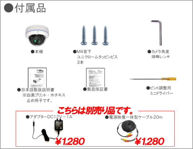 カメラ電源である、電源のアダプタは付属しておりません。