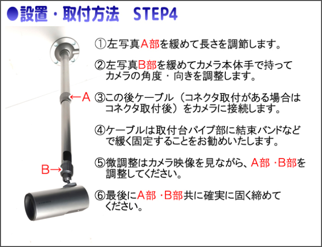 伸縮式取付台67~119cm|防犯カメラ監視カメラ・屋内用天吊・フィクサー・ブラケット|アジャスト調整式|ES-BR120AJB
