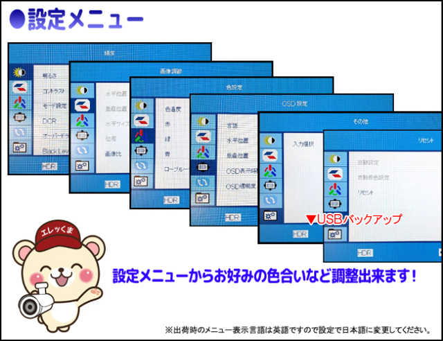 このモニター・ディスプレイは以下の4種類の金具で壁掛・デスク固定が可能です。