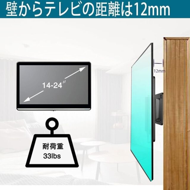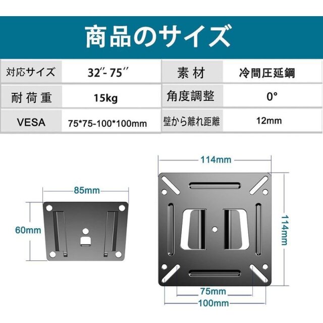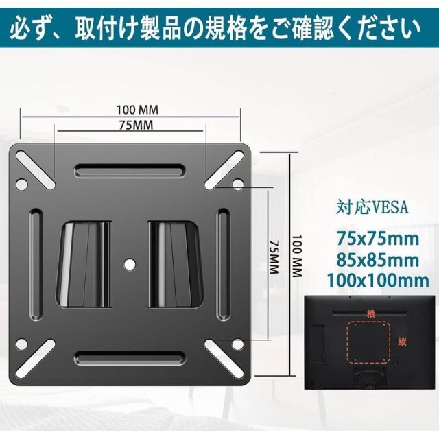 モニター・ディスプレイ壁掛金具(薄型固定型)|調整不可14型~24型対応|VESA対応75×75/100×100mm|N2
